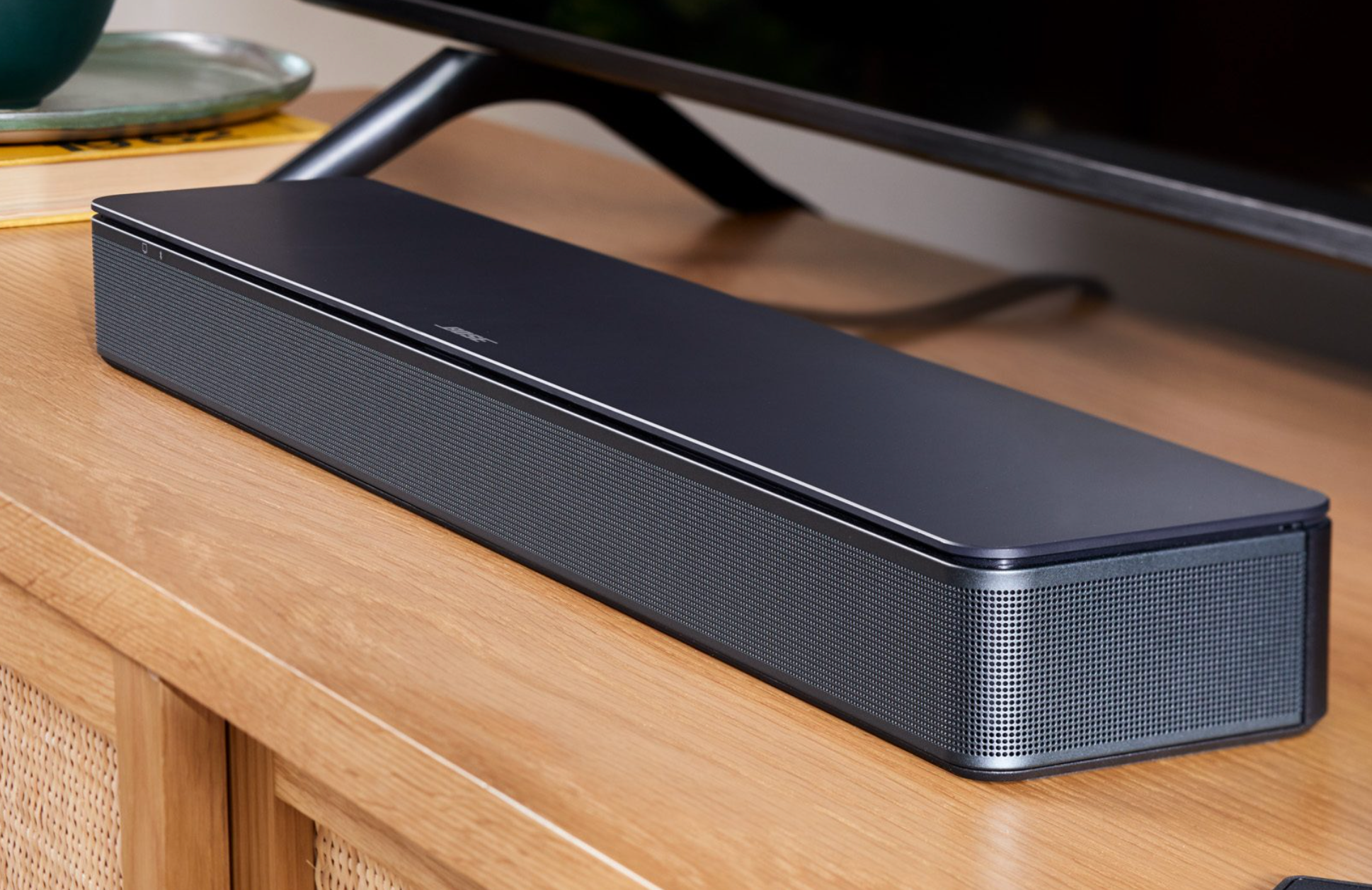 - サウンドバーはスペースを取らずに設置することができ、シンプルな外観がインテリアに馴染みやすくなっている。